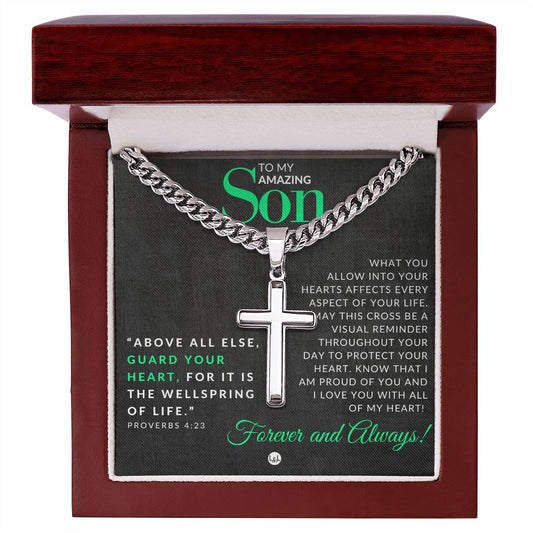 Proverbs 4:23 - Christian Cross Pendant Necklace - Gift For Son