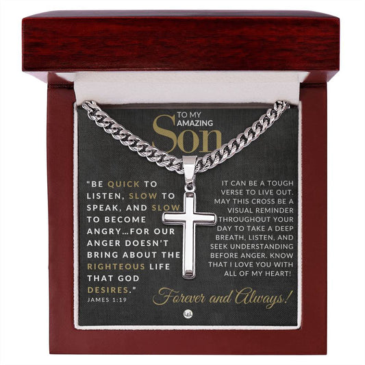 James 1:19 - Christian Cross Pendant Necklace - Gift For Son