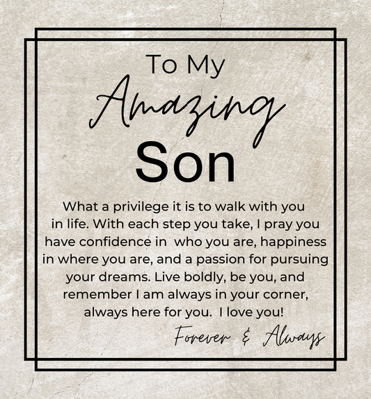 Perfect for biological sons, stepsons, bonus sons, foster sons, sons-in-law, or future sons-in-law. Each gift comes with a heartfelt message card and beautiful packaging to show your unwavering support and love. Great for Christmas, birthdays, graduations, Valentine's Day, baptisms, confirmations, or any special occasion.