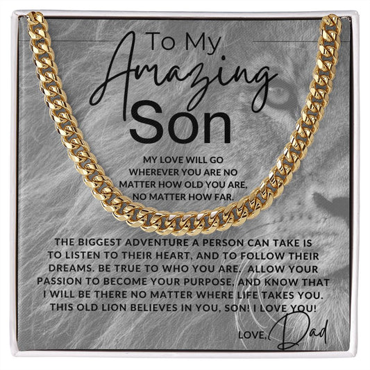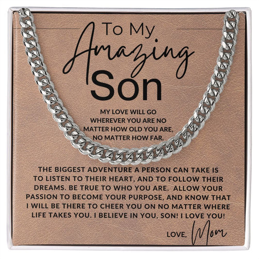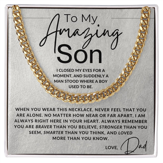 No Matter How Near or Far - Cuban Chain Necklace - Gift For My Son From Dad