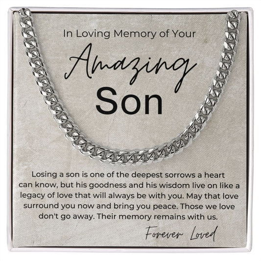 In Loving Memory - Sorry for the Loss of Your Son - Sympathy Gift for Guy Linked Chain Necklace