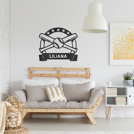 Baseball Wall Art with Name Banner - Custom Metal Baseball Sign - Playroom Sign, Gift for Baseball Player
