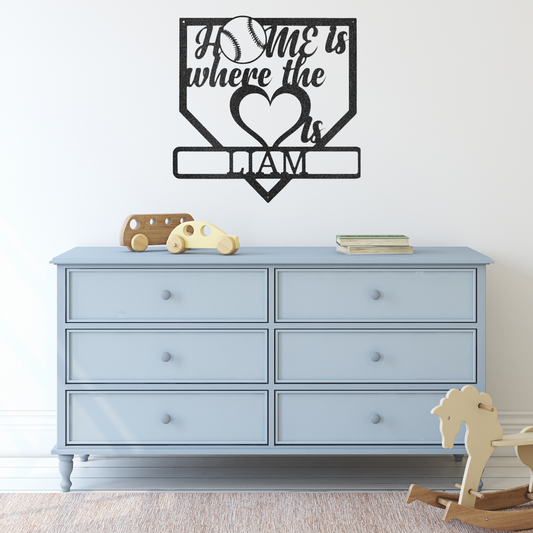 Home is Where the Heart is - Baseball Sign - Laser Cut Metal Sign, Playroom Sign, Gift for Baseball Player