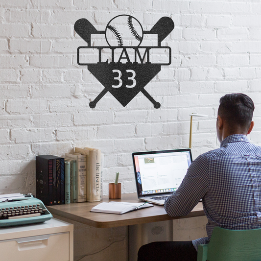 Baseball Wall Art With Players Name and Number - Custom Metal Baseball Sign - Playroom Sign, Gift for Baseball Player