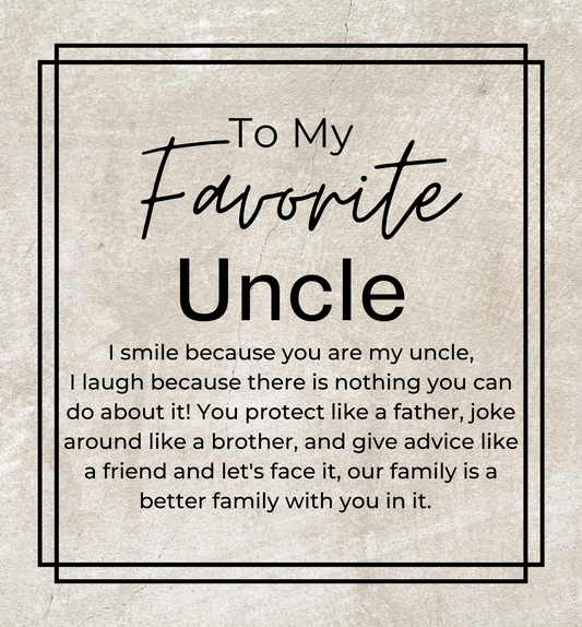 You lucked out with a fun uncle! Celebrate him with a thoughtful, sentimental gift from our "Uncle Collection". We have curated a collection of great gifts with your uncle in mind.