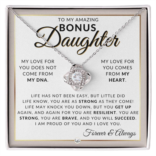 Bonus Daughter Gifts - You Are Strong - Pendant Necklace + Sentimental Keepsake Message For Bonus Daughter - Great Christmas Gift, Birthday Present or Graduation Surprise
