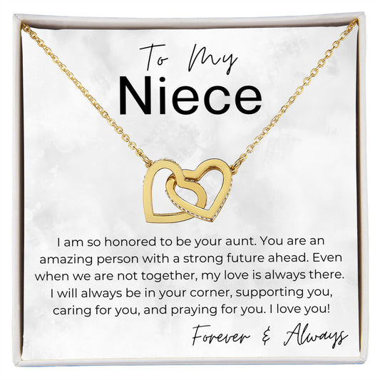 I will Always Be in Your Corner - A Gift for Niece from Aunt - Interlocking Heart Pendant Necklace