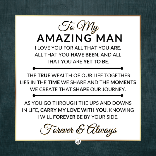 Give a gift with a sentimental and meaningful message straight from the heart this year for Valentine's Day. The perfect gift for your man, boyfriend, fiance, or husband.