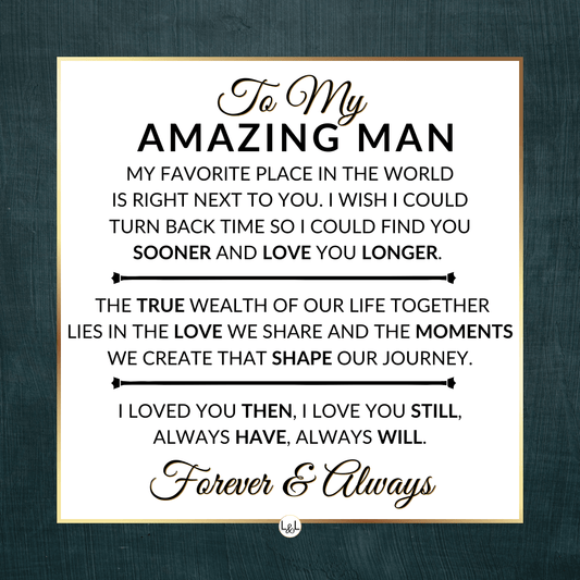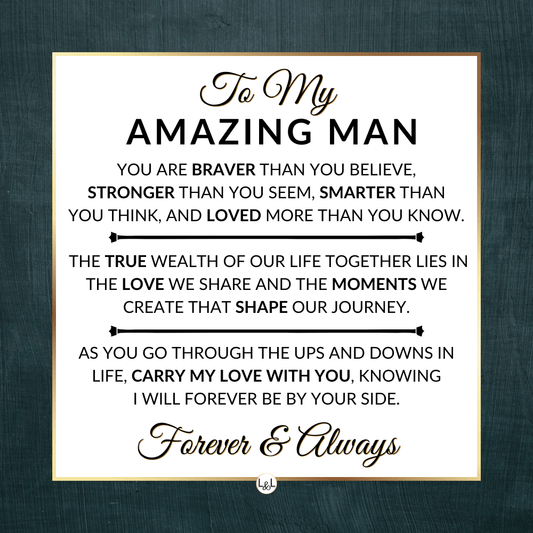 Give a gift with a sentimental and meaningful message straight from the heart this year for Valentine's Day. The perfect gift for your man, boyfriend, fiance, or husband.