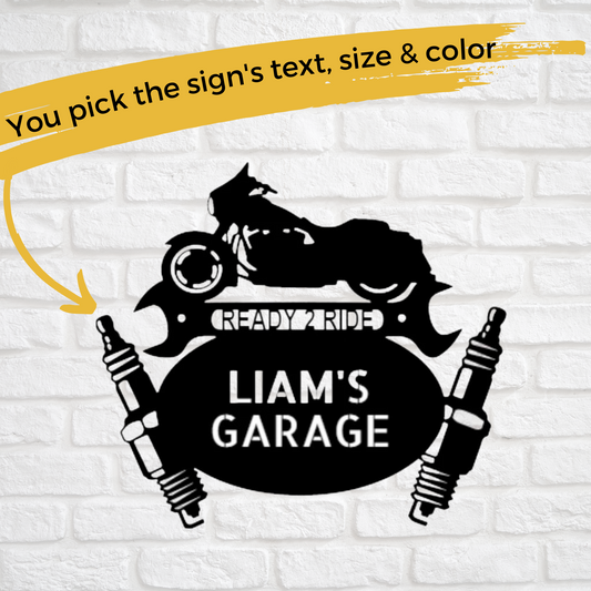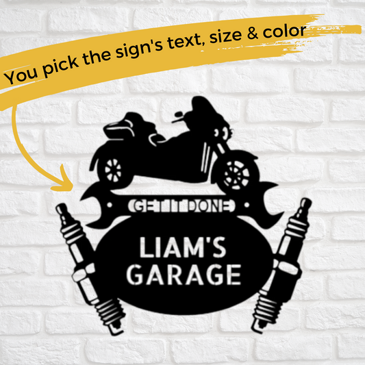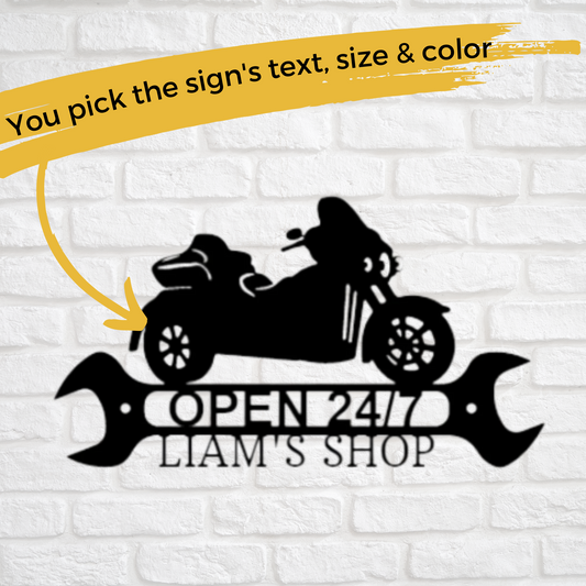Motorcycle Sign - Personalized Metal Sign - Trike Shop Monogram with Wrench