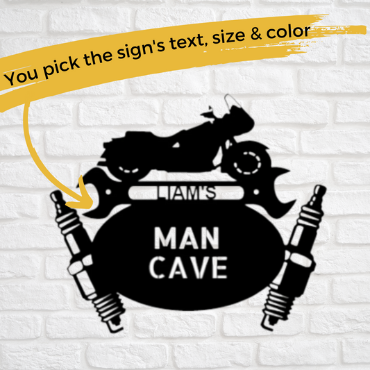 Motorcycle Sign - Personalized Metal Sign - Cruiser Monogram with Engine and Wrench