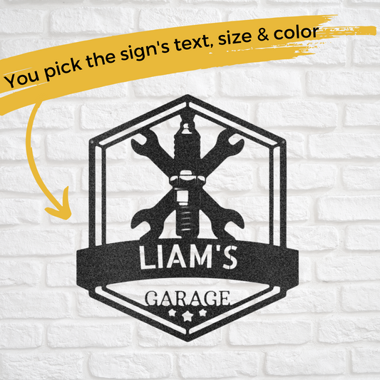 Garage Sign - Personalized Metal Sign - Garage and Tools - Gift for Dad, Gift for Mechanic, Gift for Mr. Fix It, Shop Sign, Father's Day