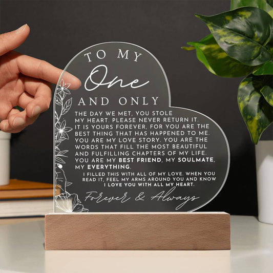 Meaningful Gift For Her - My One And Only - Heart Shaped Acrylic Plaque - Perfect Christmas Gift, Valentine's Day, Birthday or Anniversary Present