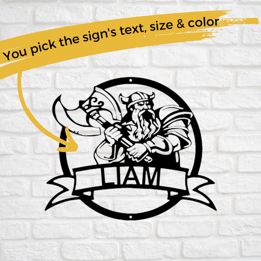 Viking Sign - Personalized Metal Name Sign - Fighting Viking Monogram