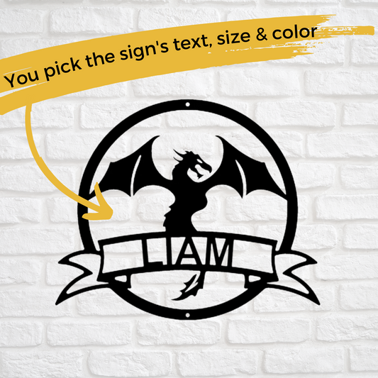 Dragon Sign - Personalized Metal Name Sign - Waving Banner Monogram