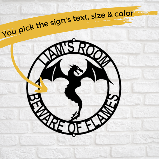 Dragon Sign - Personalized Metal Name Sign - Ring of Text Monogram