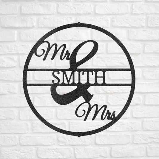 Personalized Mr. and Mrs. Monogram, Circle, Family Name Sign, Metal Wall Decor, Housewarming Gift, Metal Monogram Sign, Wedding Gift, Anniversary Gift