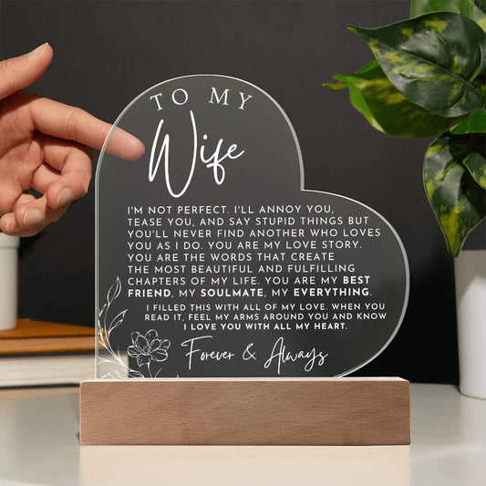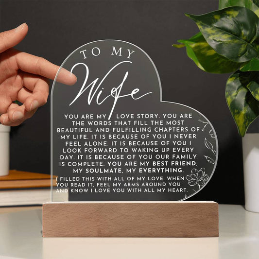 Romantic Gift For My Wife - Heart Shaped Acrylic Plaque - Perfect Christmas Gift, Valentine's Day, Birthday or Anniversary Present