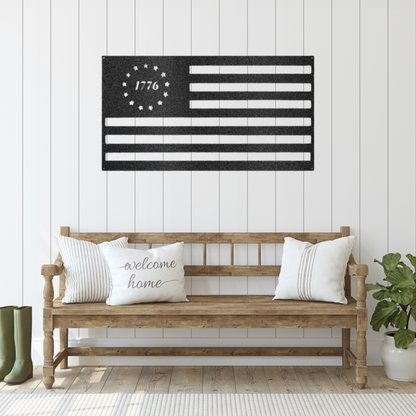 1776 Flag - Custom Metal Sign- USA, Patriotic Sign, 4th of July Wreath