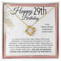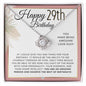 Are you looking for the perfect birthday gift idea for her in celebration of her 29th birthday? One that is unique and special? Celebrate her and her 29th birthday with this beautiful pendant necklace and a heartfelt birthday message featuring pink boho floral and gold accents. Your friend, daughter, sister, or cousin will love it!