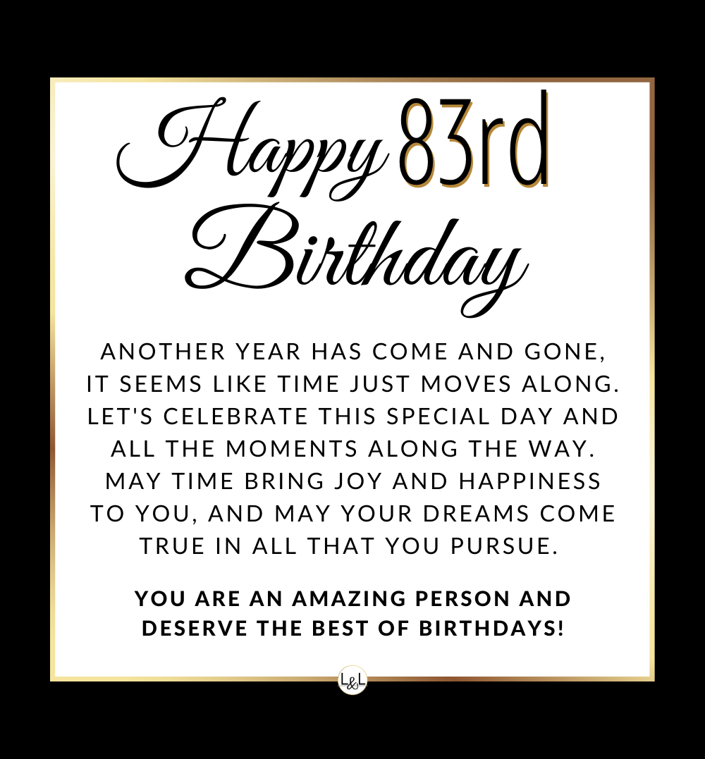 The printed message inside the watch gift box reads: Happy 83rd Birthday! Another year has come and gone, it seems like time just moves along. Let's celebrate this special day and all the moments along the way. May time bring joy and happiness to you, and may your dreams come true in all that you pursue.