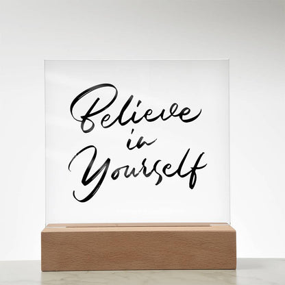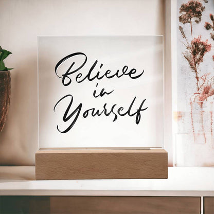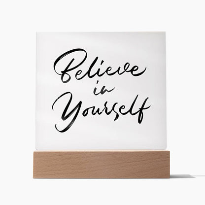 Believe In Yourself - Motivational Acrylic with LED Nigh Light - Inspirational New Home Decor - Encouragement, Birthday or Christmas Gift