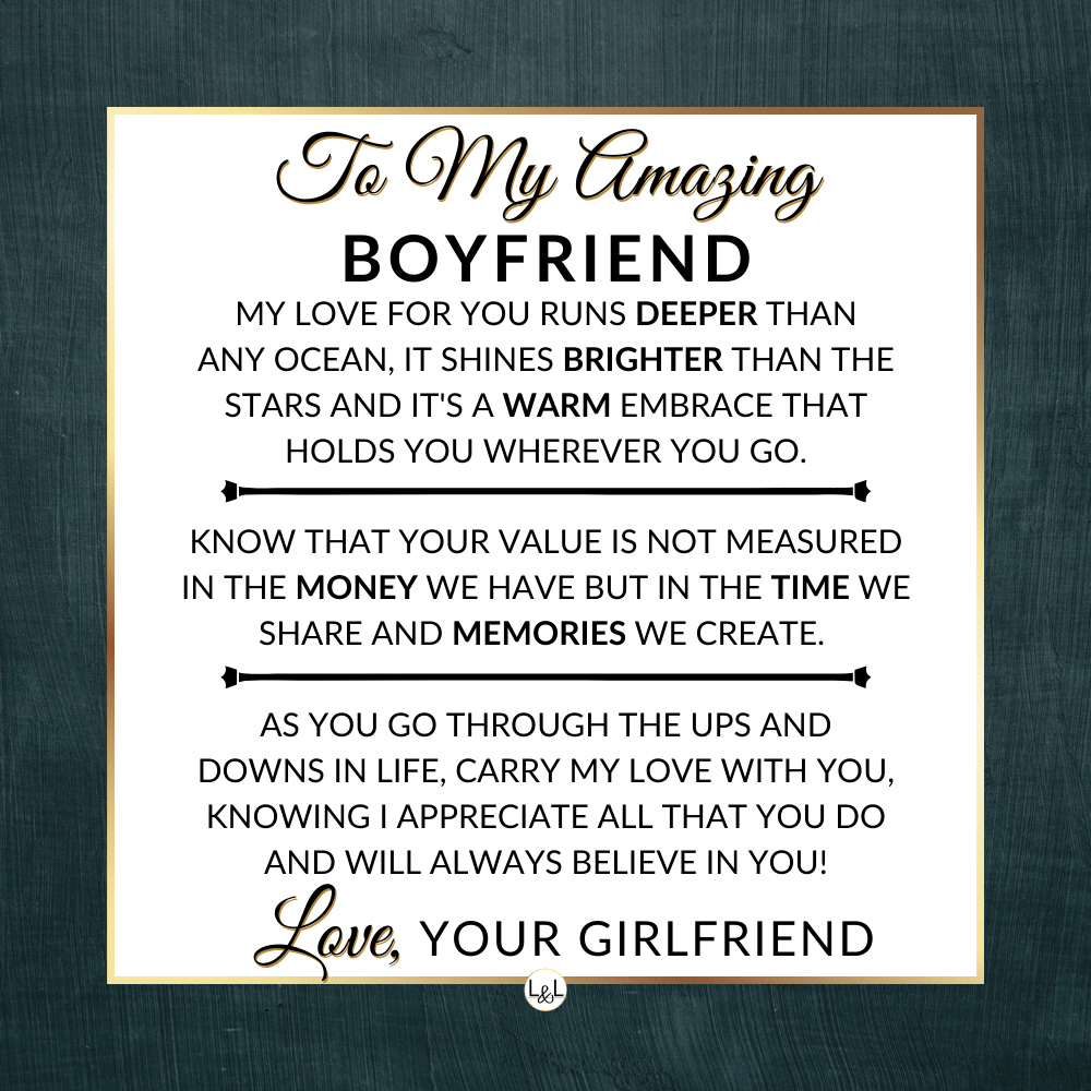 - Print-to-order message card with a heartfelt message just for your boyfriend