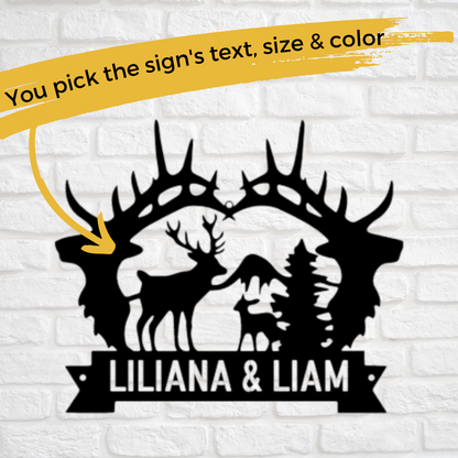 Outdoor Monogram Sign: Antler Framed Buck and Fawn - Personalized Metal Sign - Wildlife Outdoor Decor, Lake House Sign, Cabin Sign - Year Long Outdoor Decor