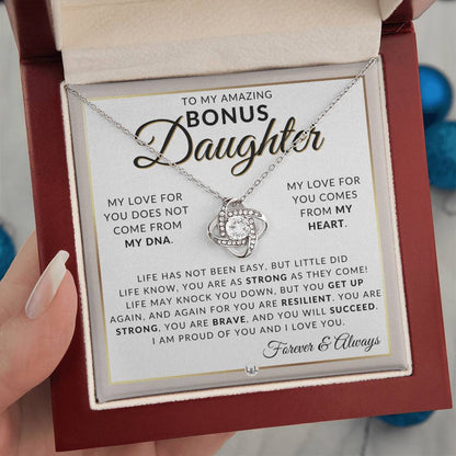 Bonus Daughter Gifts - You Are Strong - Pendant Necklace + Sentimental Keepsake Message For Bonus Daughter - Great Christmas Gift, Birthday Present or Graduation Surprise
