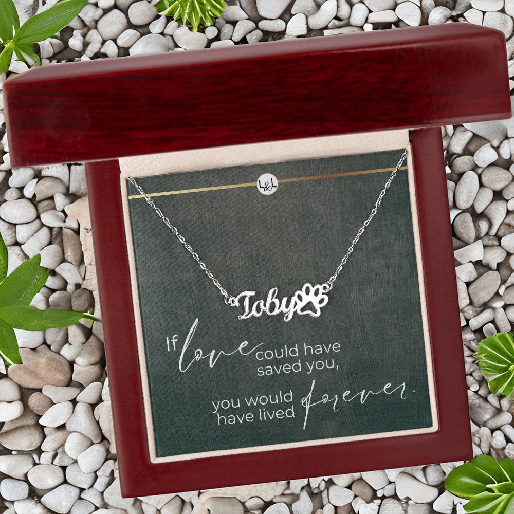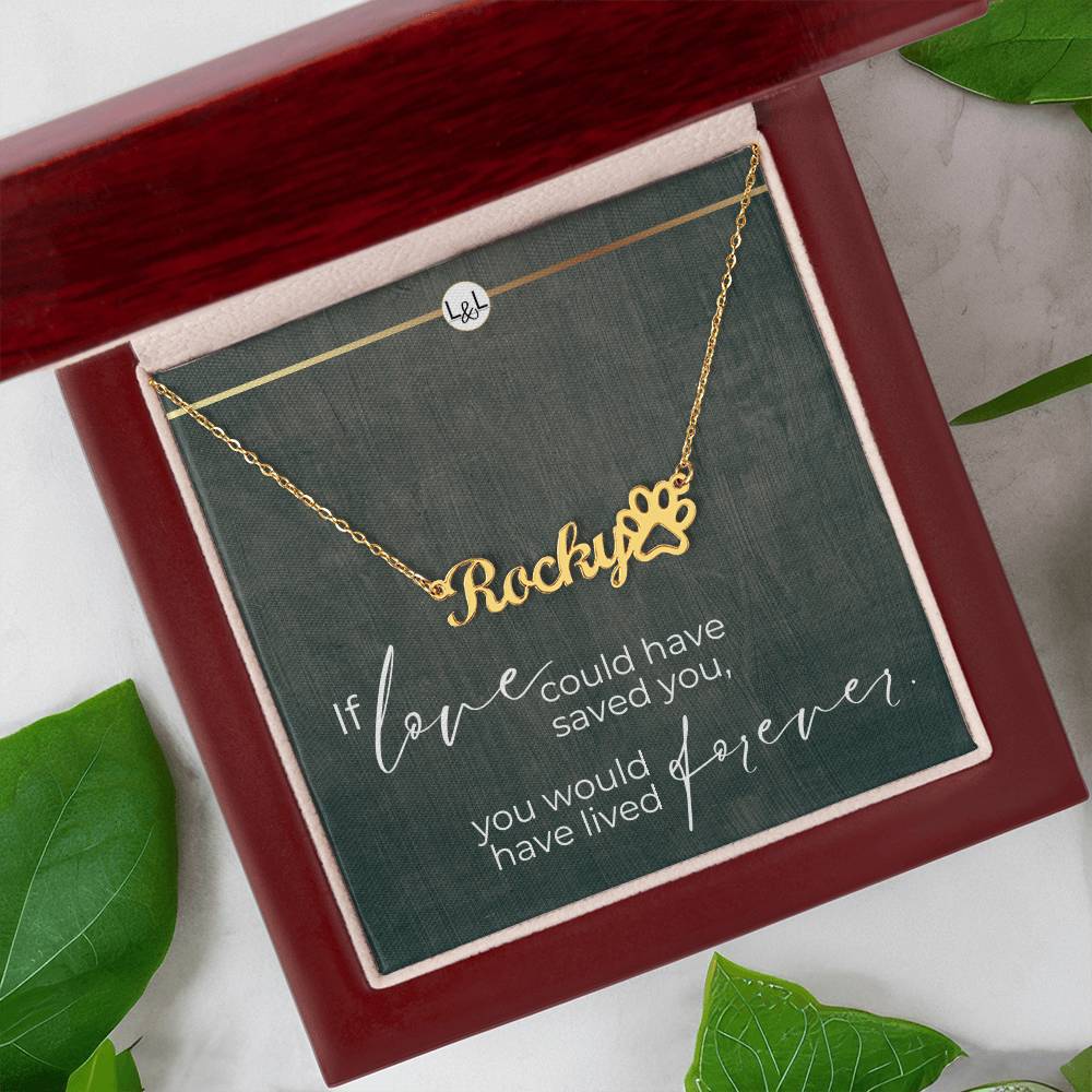 Cat Loss Gift - You Would Have Lived Forever - Name Necklace + Paw Print - Custom Dog Remembrance, Bereavement & Sympathy Gift