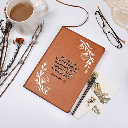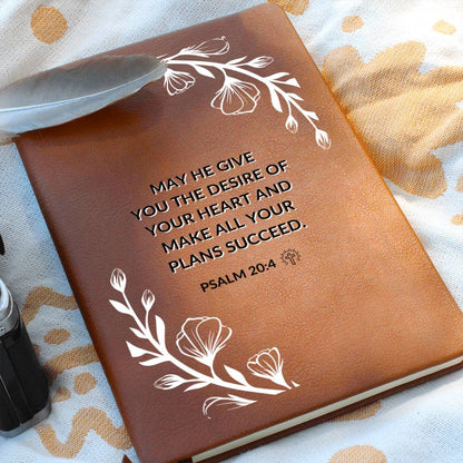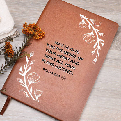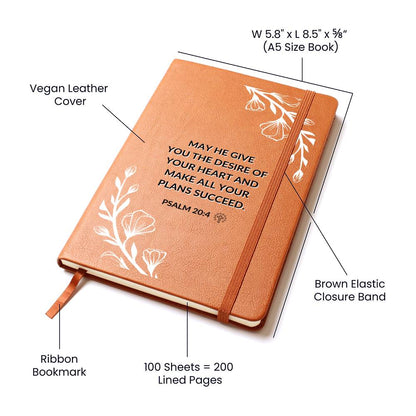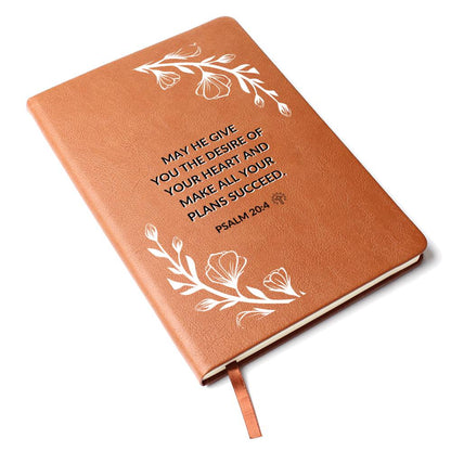 Christian Notebook - The Desires Of Your Heart - Psalm 20:4 - Inspirational Leather Journal - Encouragement, Birthday or Christmas Gift