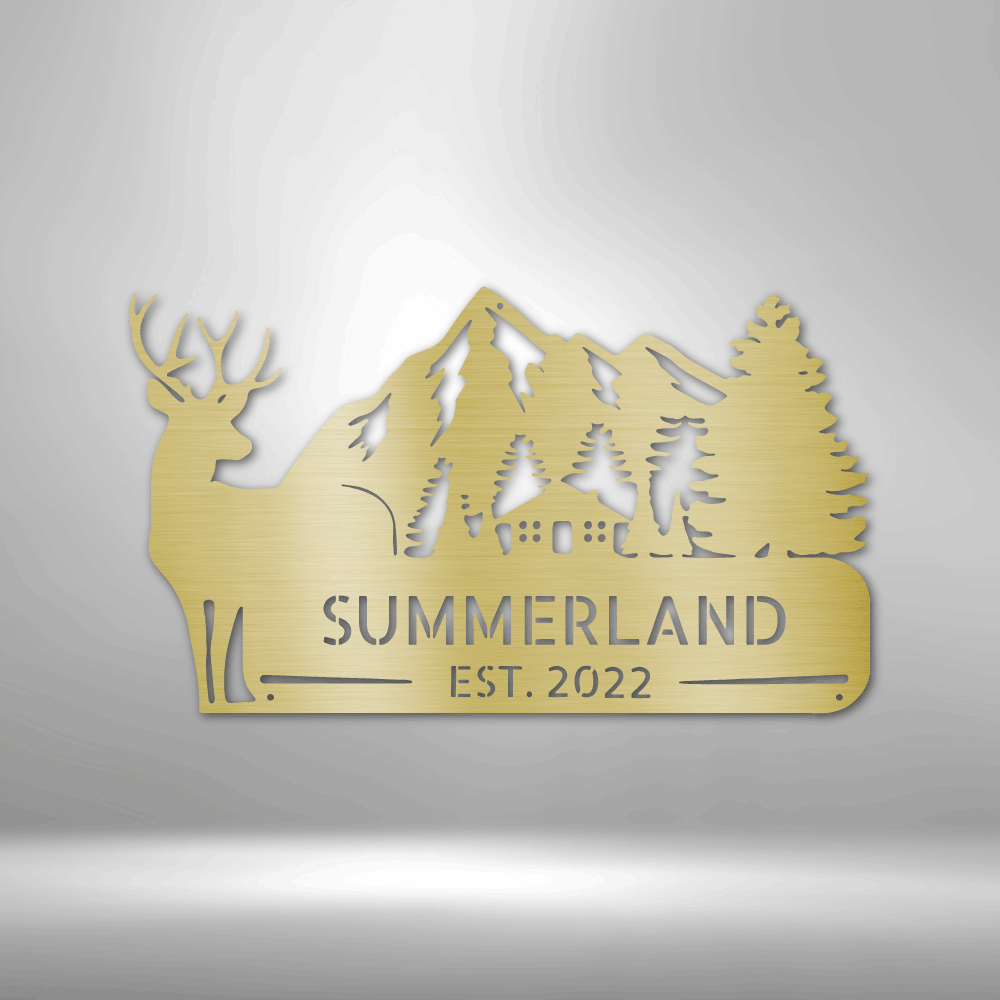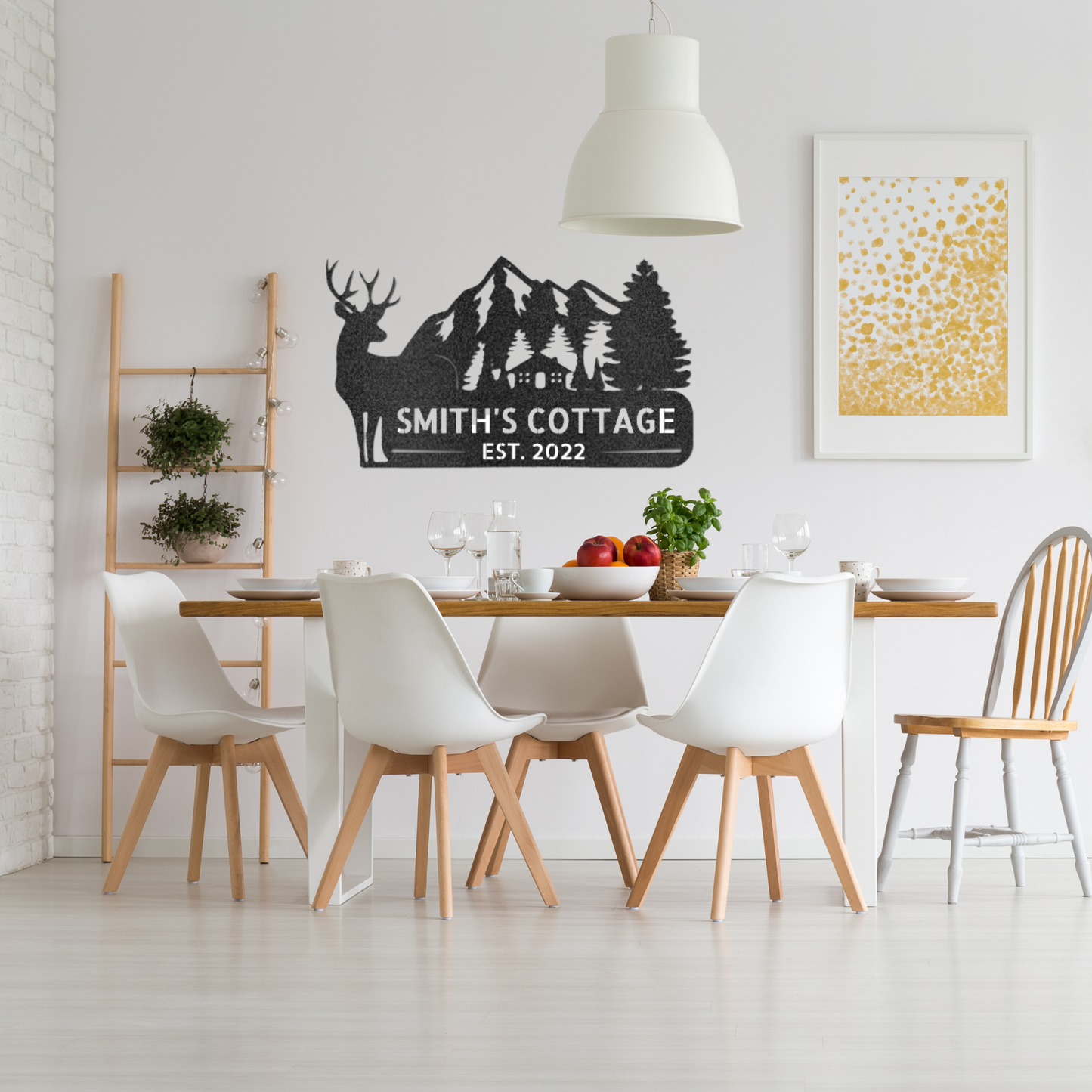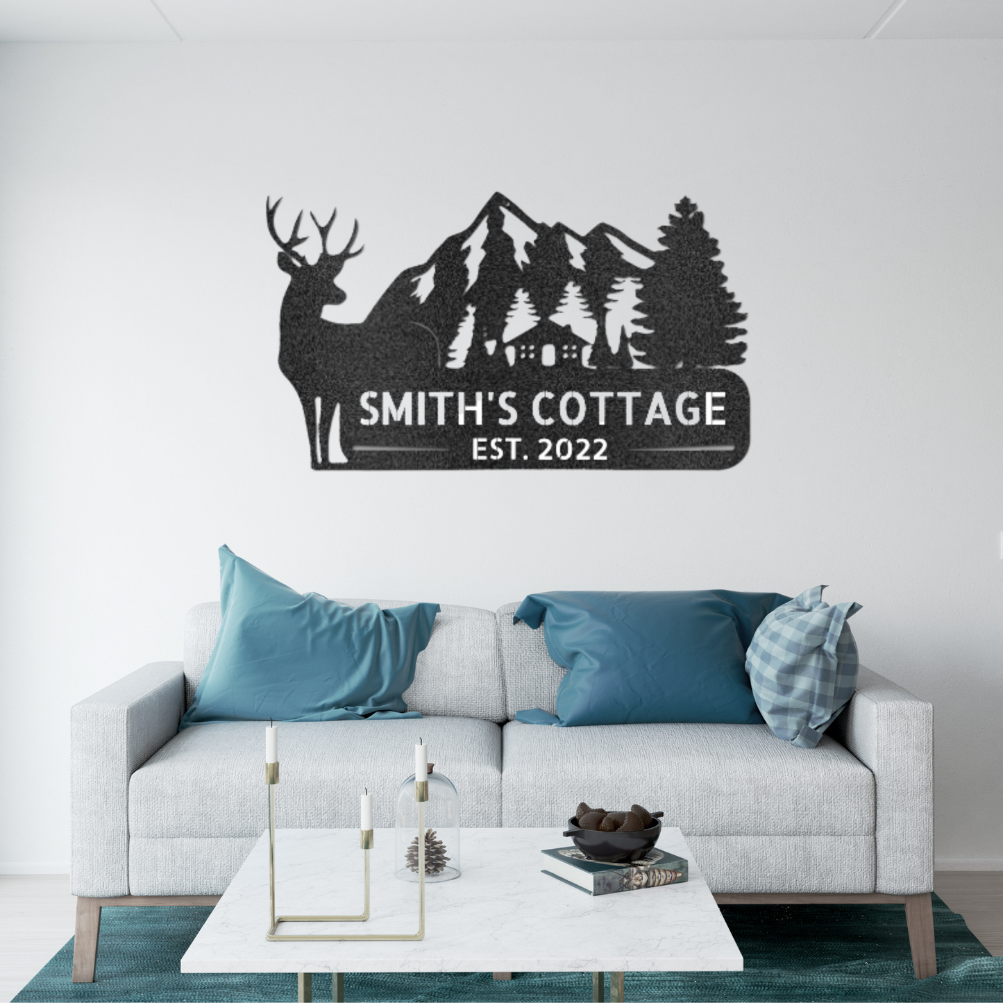 Mountain Side Cottage - Laser Cut Metal Sign - Mountain Wall Art, Mountain Silhouette