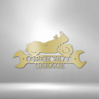 Motorcycle Sign - Personalized Metal Sign - Cruiser Monogram with a Wrench