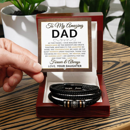 Dad Gift, From Daughter - Men's Leather Bracelet For Dad - Great For Christmas, Father's Day or His Birthday