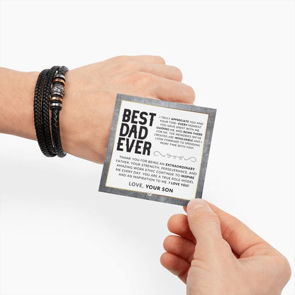 Dad Gift, From His Son - Men's Leather Bracelet For Dad - Great For Christmas, Father's Day or His Birthday
