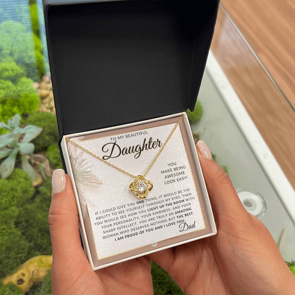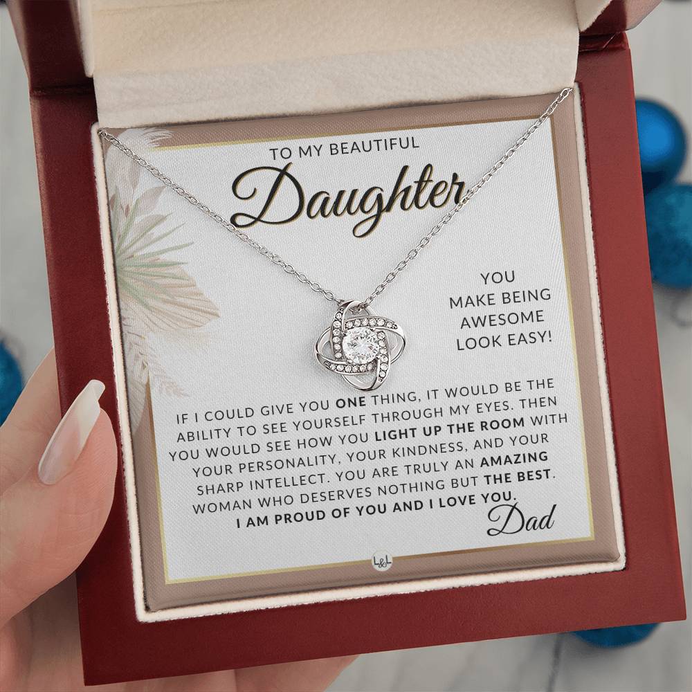 Daughter Gifts From Dad - Necklace For Daughter From Dad - Pendant Necklace + Sentimental Keepsake Message - Great Christmas Gift, Birthday Present or Graduation Surprise