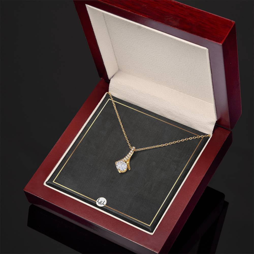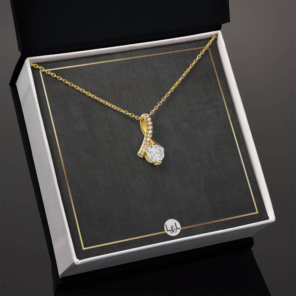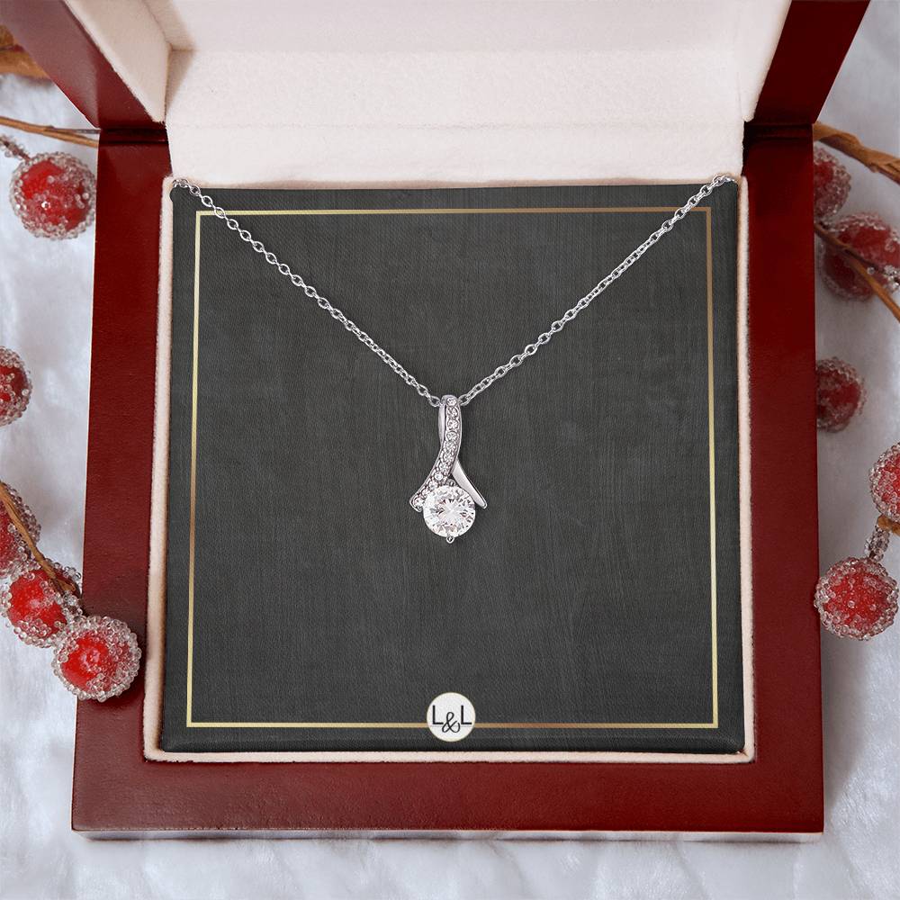 Imagine her reaction when she opens this stunning gift! The Alluring Beauty necklace features a petite ribbon shaped pendant that is sure to dazzle your special someone. Whether it's a birthday or anniversary, make sure to get her a gift she will love for years to come.