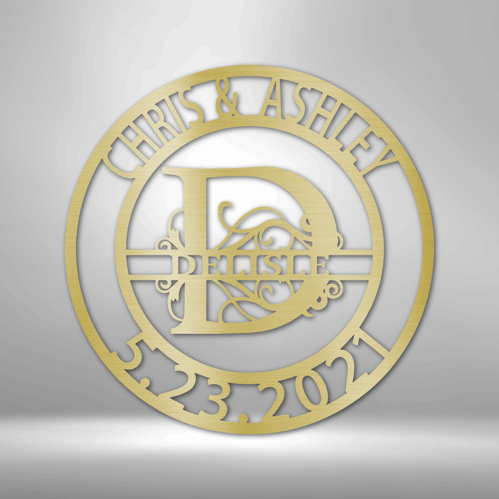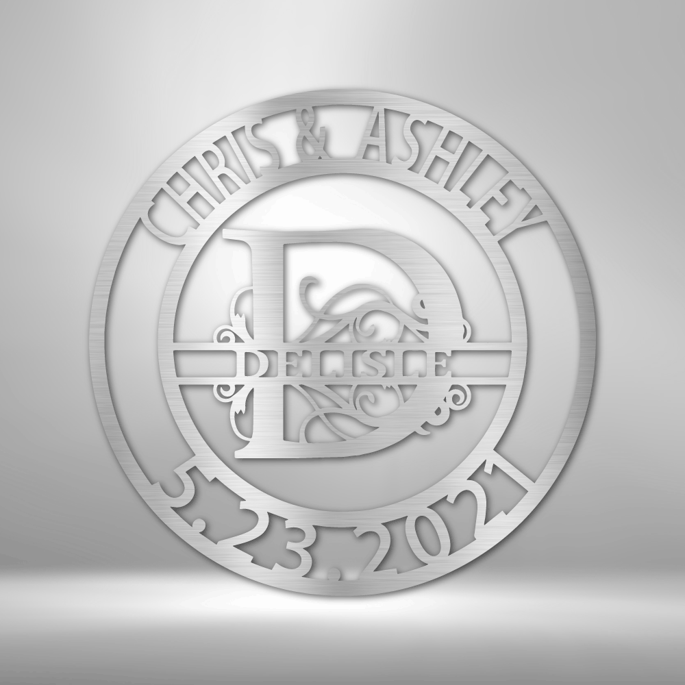 Split Circle with Simple Initial Letter - Metal Sign, Family Name Sign, Initial Wall Decor, Front Porch Name Sign