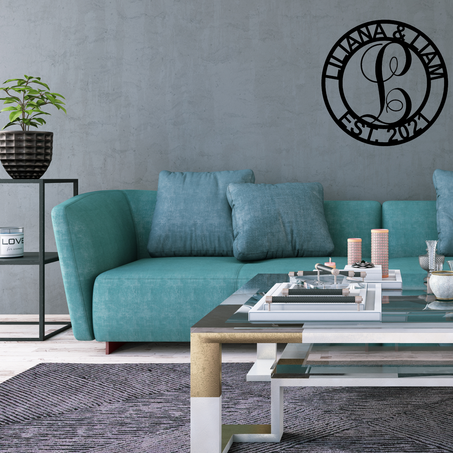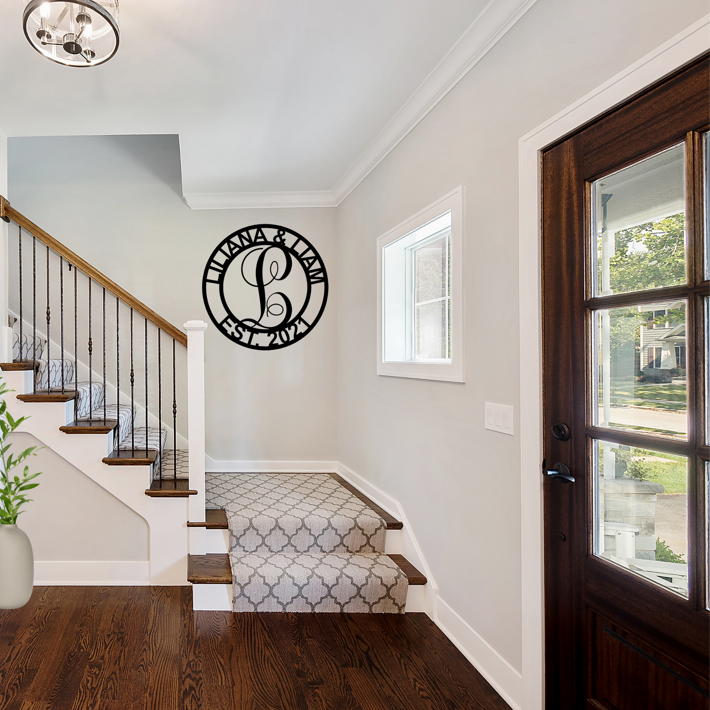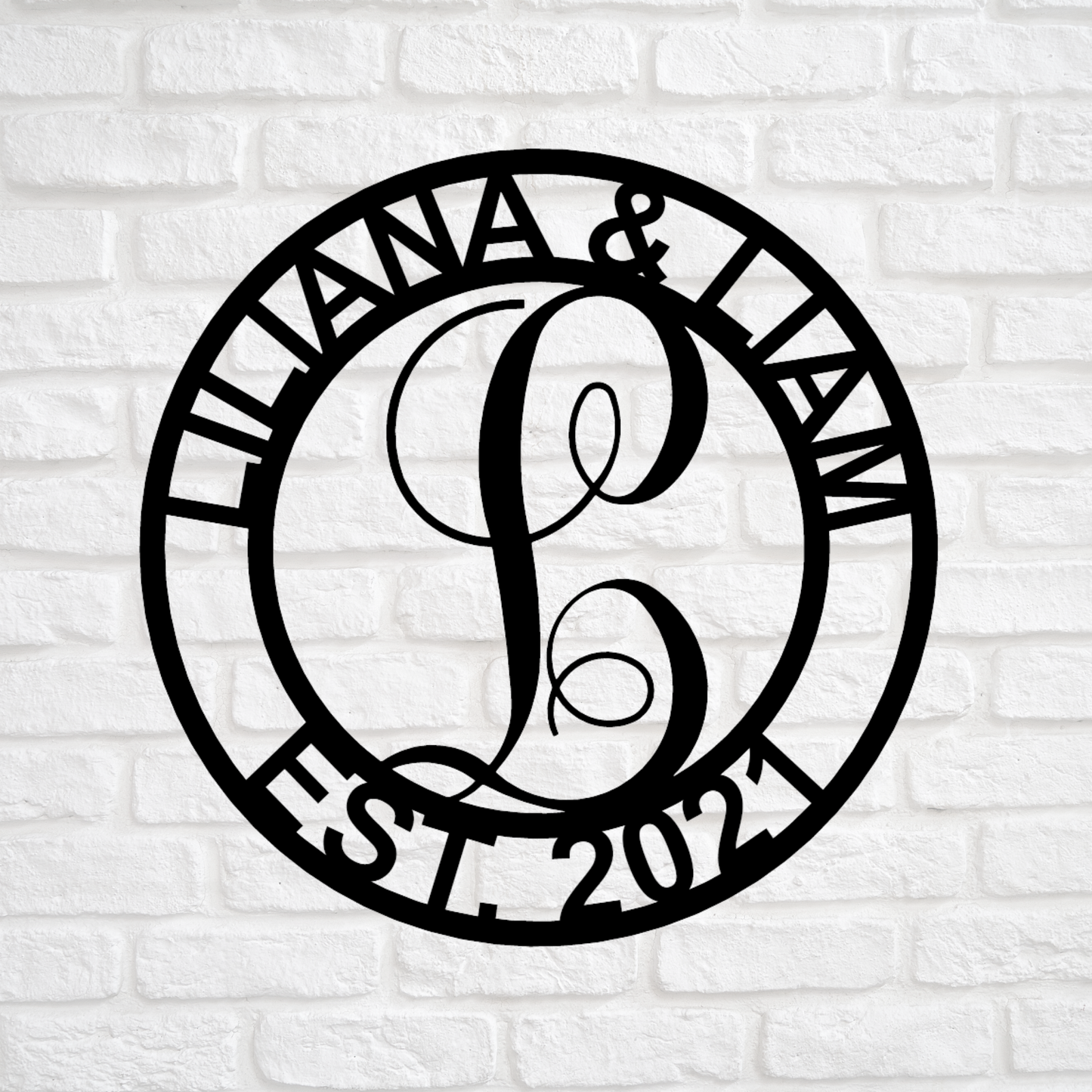 Round Sign with Fancy Initial Letter - Metal Sign, Family Name Sign, Initial Wall Decor, Front Porch Name Sign