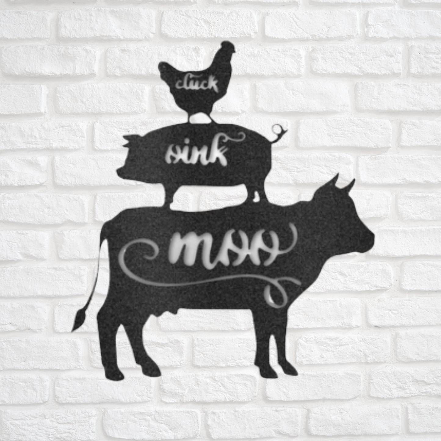 Add a touch of farmhouse to your kitchen with this custom metal Cluck Oink Moo Sign. Its the perfect sign to go along with your farmhouse kitchen!