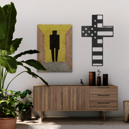 Flag Cross - Custom Metal Sign - USA, Patriotic Sign, 4th of July Wreath, Christian Artwork