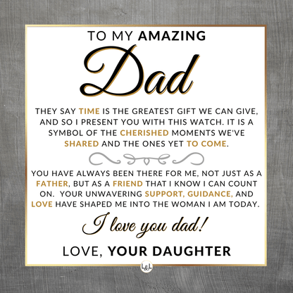 Our watch represents your dad's dedication and hard work throughout his life and the impact that it has made on your life!