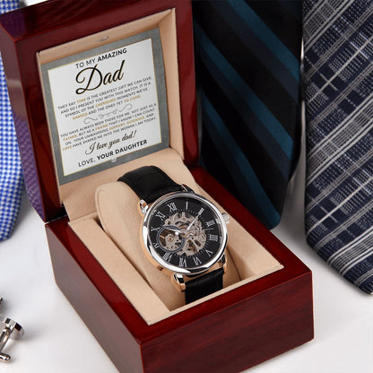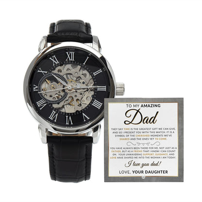 Gift For Dad, From Daughter - Men's Openwork Watch + Box - Thoughtful Father's Day, Christmas or Birthday Gift For Him
