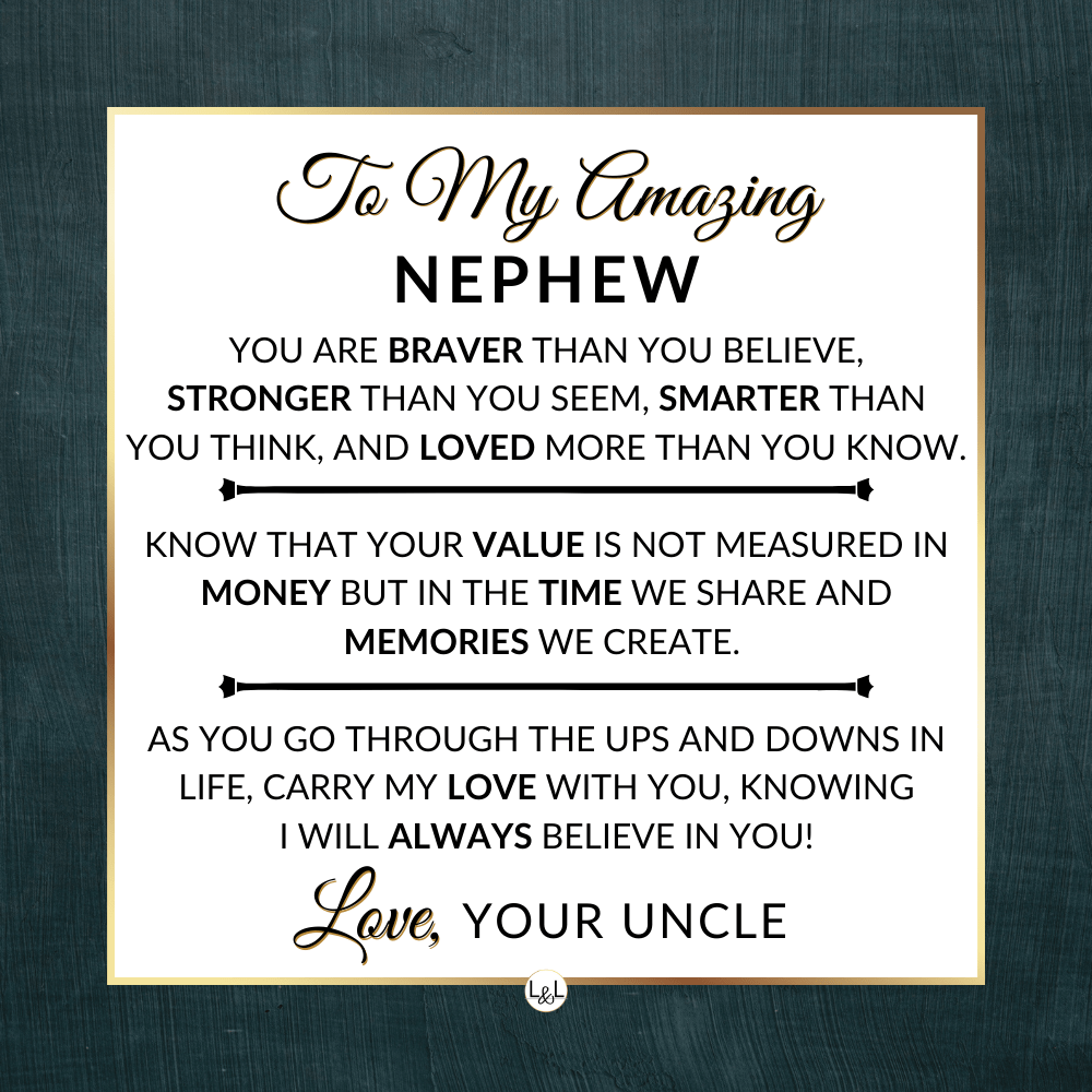 Are you looking for a unique gift idea for your nephew? One that is special from his uncle? Celebrate your nephew with this stunningMen's Braided Leather Bracelet with a Cross with a heartfelt keepsake message. It makes for a wonderful Christmas, birthday, or graduation gift.