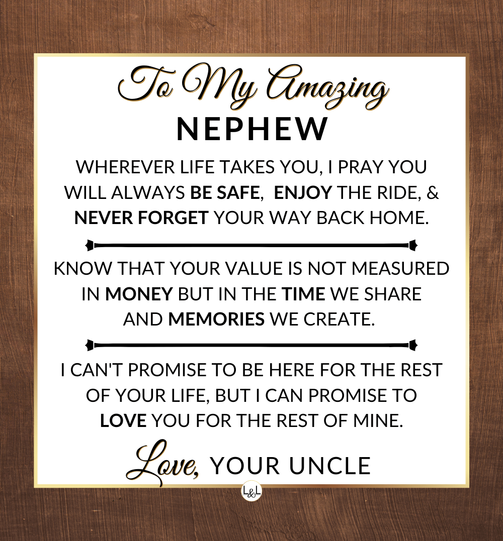 Are you looking for the perfect gift idea for your nephew? One that is unique and special? Celebrate your nephew with this stunning automatic skeleton watch with a heartfelt message. It makes for a wonderful Christmas, birthday, or graduation gift.
