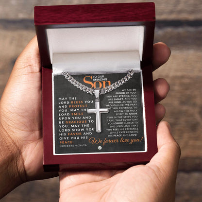 Gift For Our Son - Boy, Teen, or Men's Chain with Cross Necklace - Christian Jewelry For Your Son For Christmas, His Birthday, His Baptism or Confirmation