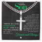Gift For Our Son - Proverbs 4:23 - Christian Encouragement - Christian Cross Pendant on Men's Chain Necklace - Great for Christmas, His Birthday, Baptism or Confirmation