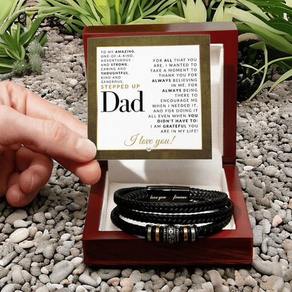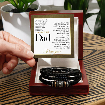 Gift For Stepped Up Dad - Men's Leather Bracelet For Stepdad - Great For Christmas, Father's Day or His Birthday