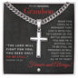 Grandson Gift - Exodus 14:14 - Christian Encouragement - Christian Cross Pendant on Men's Chain Necklace - Great for Christmas, His Birthday, Baptism or Confirmation