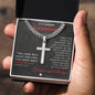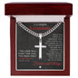 Your son can wear his faith proudly with this Cuban Chain with Artisan Cross Necklace. Perfect for special occasions or everyday wear. Personalizing the back of the cross pendant will surely make this gift treasured for years to come!